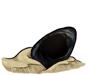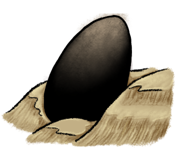In a sea of rich and vibrantly colored clutchmates with their smooth, glassy shells, this egg stands out for having a rough, dull surface. Those familiar with wher eggs will note that Oblong Planetoid looks more like one of those than a dragon egg, although it is clearly too big to be a wher egg. Its surface is predominantly a lunar white-gray, pockmarked by darker, almost crater-like shadows cast by the uneven calcification across the shell. The bottom right quarter or third of it - it’s hard to tell exactly how much of it, with the way it’s nestled in the sand - is a dull brownish, almost rusty red patch, the color of a dried bloodstain. It’s enough to make one wonder if Frith or Moth gutted some intruder on the stands earlier and couldn’t properly clean all the blood off of this egg for some reason.