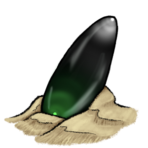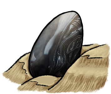 From far away this egg looks almost chitinous, poured from an ink black, biological resin that catches the light and highlights almost skeletal grooves in the egg’s surface. What look like they might’ve been empty, vacuous orbital sockets point down into the sand, half buried, as the rest of this false skull strikes high into the air above the blisteringly hot sands. It doesn’t look forgotten, it looks as though it is waiting, biding its time on a scheme written in its genetic code. Upon coming closer it is found the egg is actually as smooth as glass, a thin, translucent layer glossing over the ridges and exoskeletal bumps just beyond your reach.