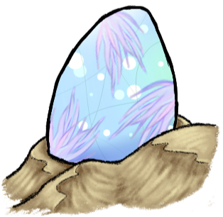 A breathtaking shade of deepest, darkest blue dominates this egg, which is large and almost completely spheroid. There are a few patches of lighter blues across the surface, ranging from a stark navy to an ethereal pale sky. These patches give the egg a mottled look, tricking the eye into making it look slightly bumpy. What really makes this egg stand out, though, is that the egg is bisected by two pinkish-purple and silver horizontal rings about a fingerwidth wide and a handwidth apart. The rings are fuzzy, as though made up of fine particles of dust. They cross in two places, giving a gyroscopic feel to the entire arrangement. Shining and shimmering in the light, the rings throw rainbow arcs onto the wall of the hatching cavern, dazzling even in the full light of day.